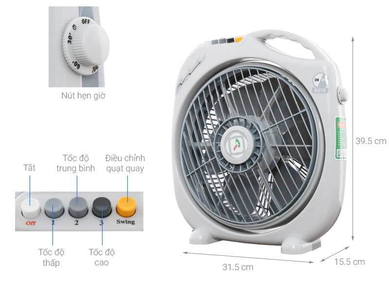 Quạt hộp có 3 tốc độ gió tùy chỉnh được điều khiển dễ dàng bằng phím bấm